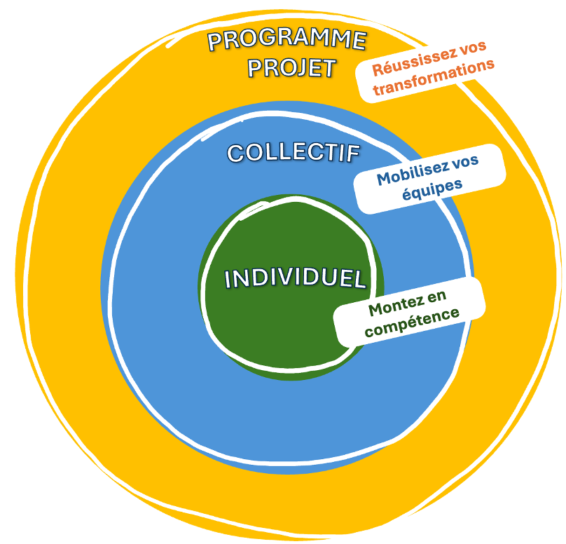 J’aide les équipes à preparer, organiser et gérer la conduite du changement de leur projet de transformation